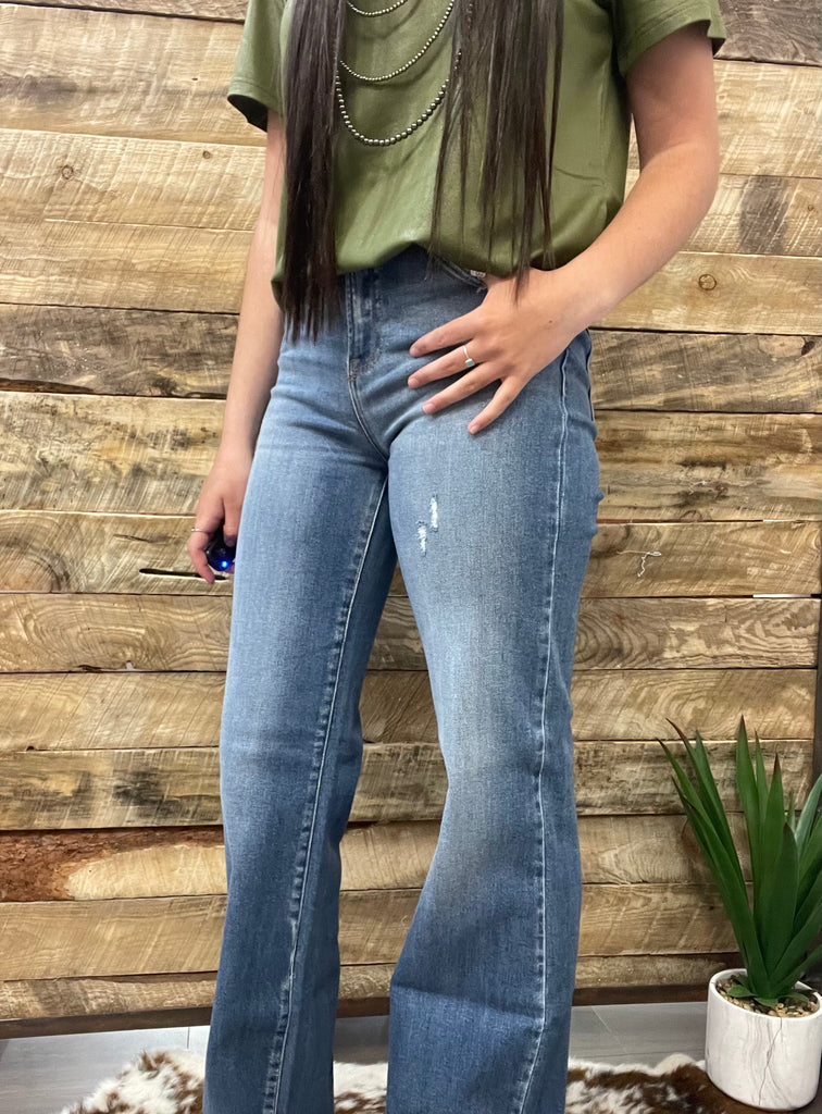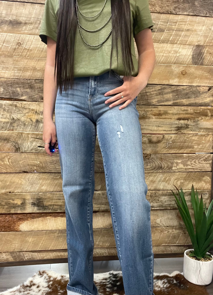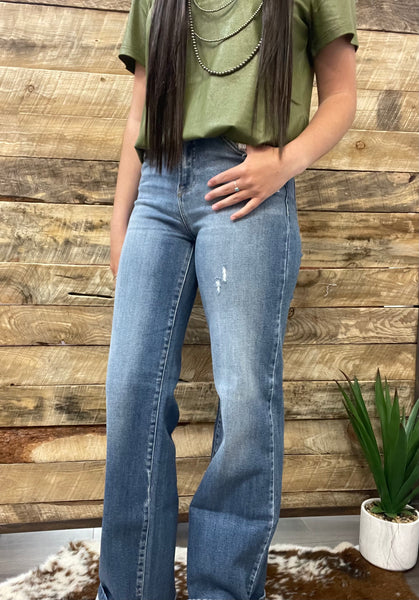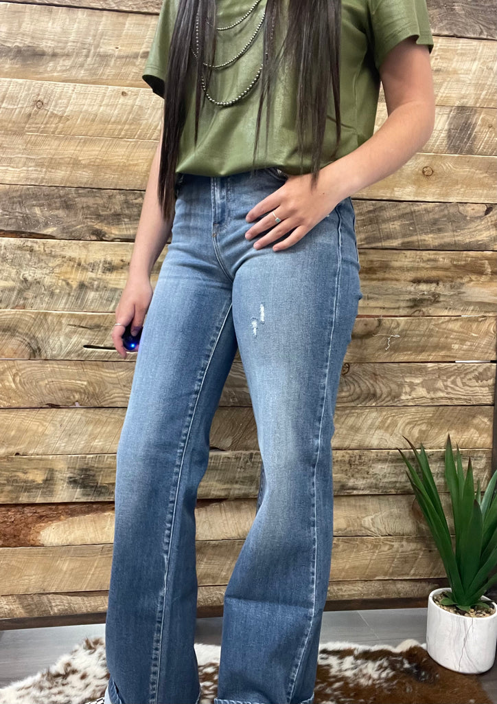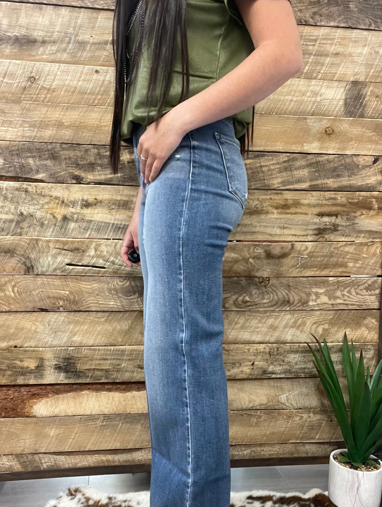 HIGH-RISE WIDE LEG JEANS- Rise 11" | Inseam 32'5" in size 3/26- Model Info: Height 5'8" | Waist 24" | Hips 34"- Model is wearing size 1