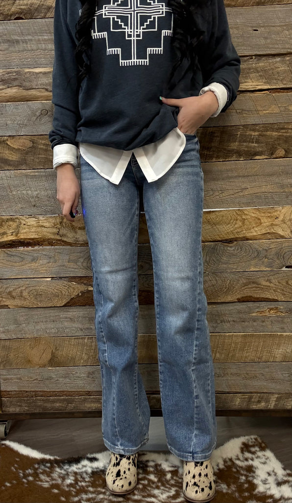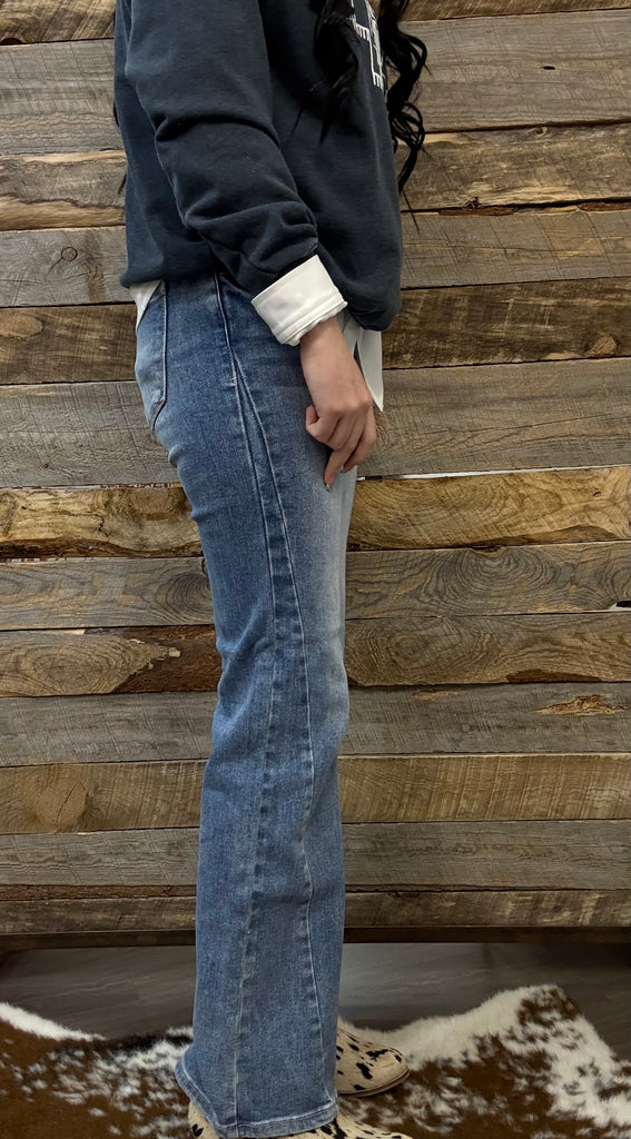 The Sharon High Rise Straight Leg Ankle Medium Jeans