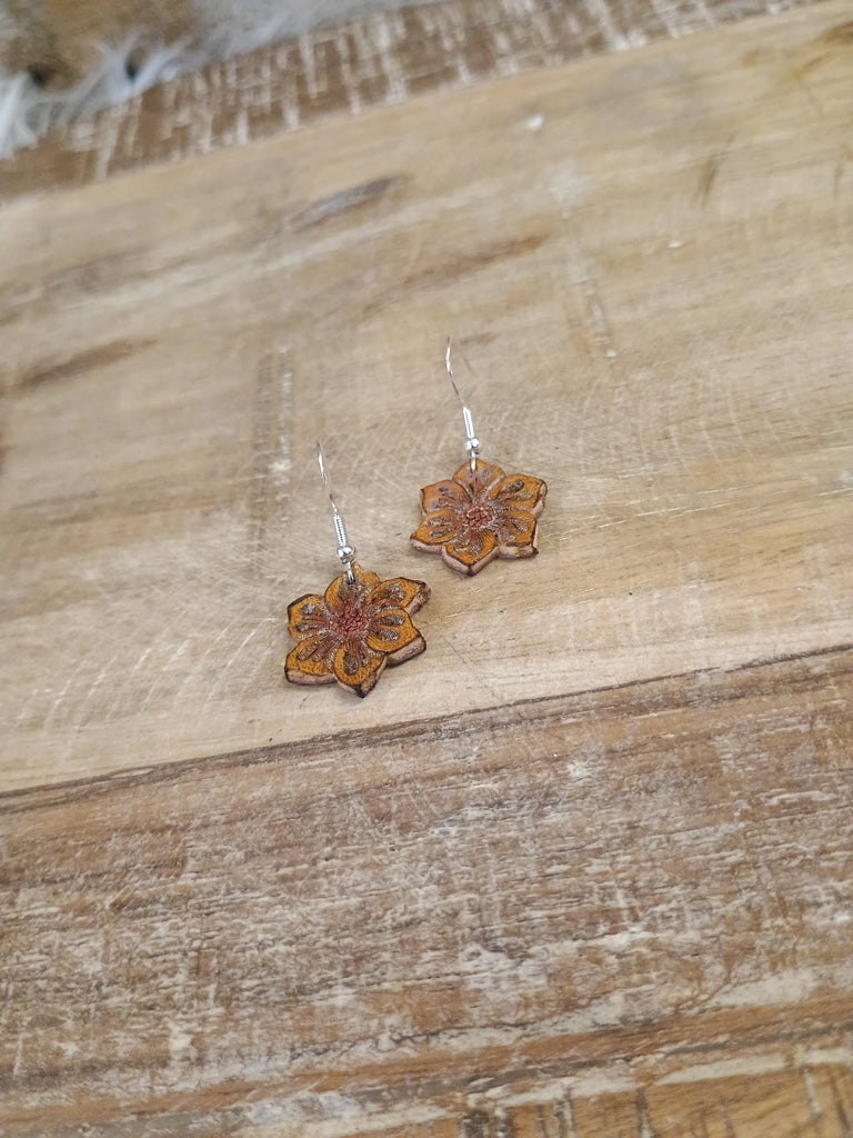 Crafted from genuine leather, these earrings are exceptionally lightweight and feature intricate hand-tooled designs. Produced with remarkable attention to detail, they showcase superior quality and are proudly made in Wyoming, U.S.A.
