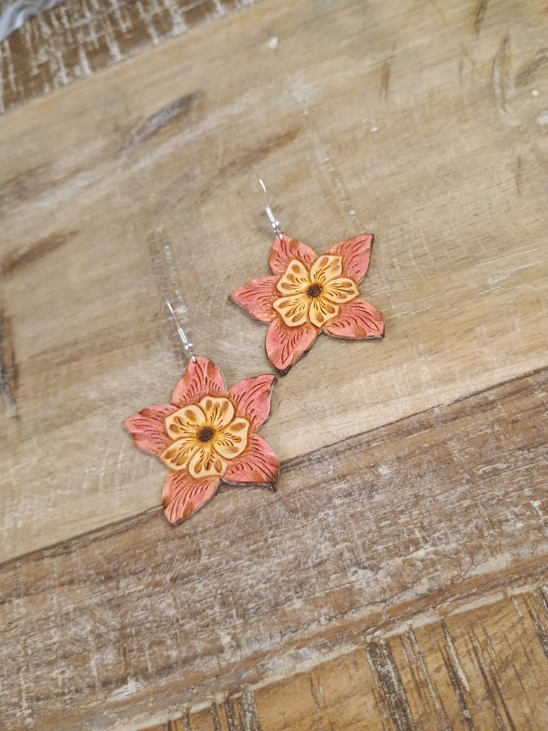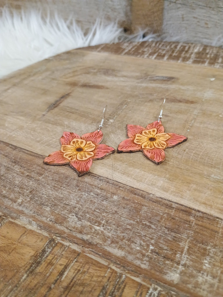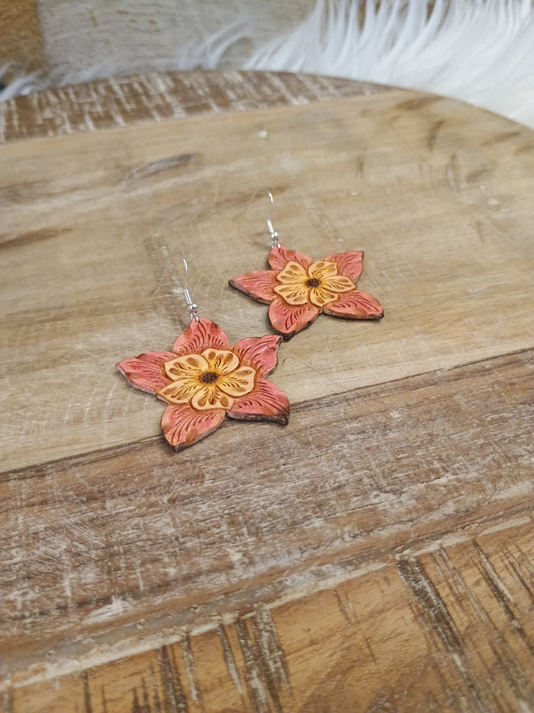 Crafted from genuine leather, these earrings are exceptionally lightweight and feature intricate hand-tooled designs. Produced with remarkable attention to detail, they showcase superior quality and are proudly made in Wyoming, U.S.A.