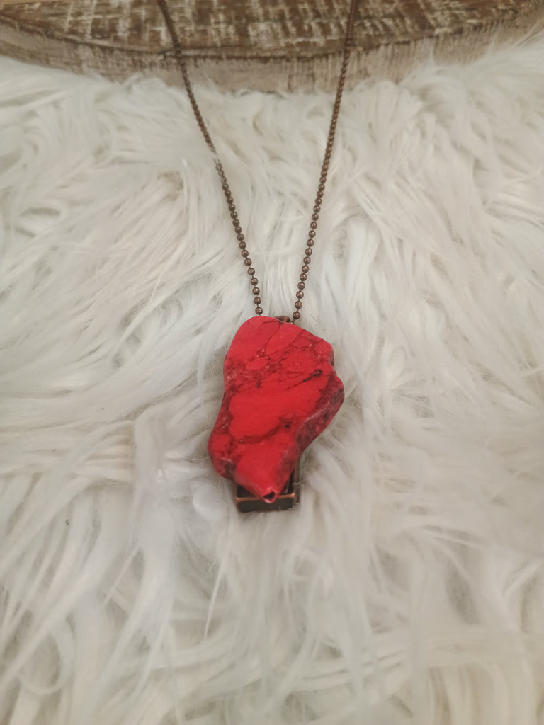 Red Chunk Pendant On Copper Chain