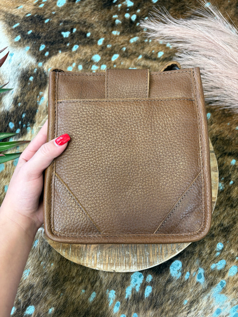 The Wide Open Plains Lola Crossbody features luxurious hair on hide with leopard print and copper foil accents. Finished with genuine full grain oiled and waxed leather makes this the perfect accessory for any outfit.