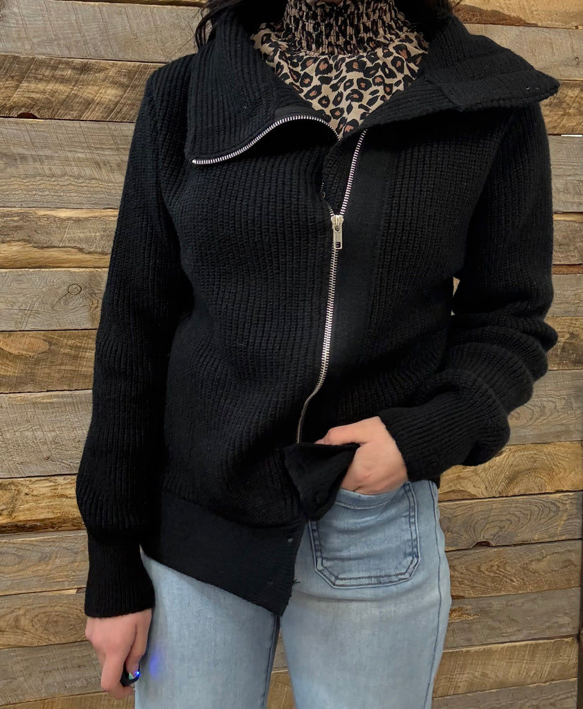 Front Zip Up High Neckline Sweater Jacket
