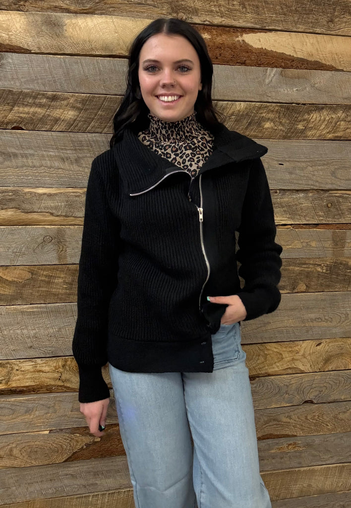 The Around Here Block Mock Neck Black Sweater