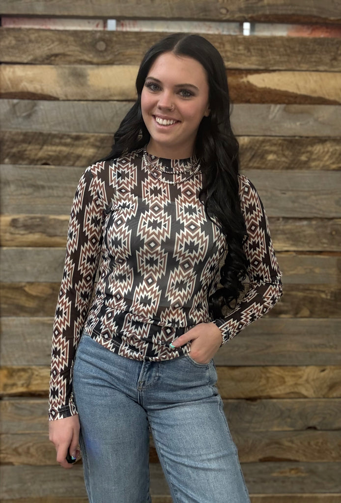 The Aztec Black Mesh Top