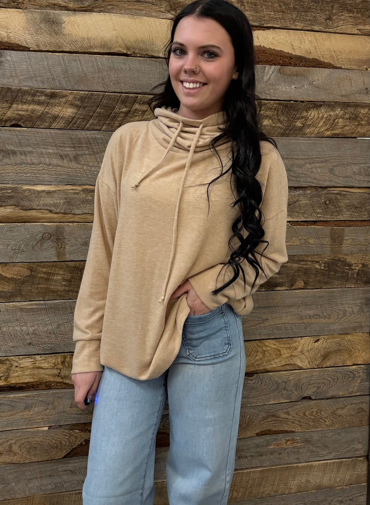 BRUSHED HACCI TURTLE NECK SIDE POCKETS LSLV TOP