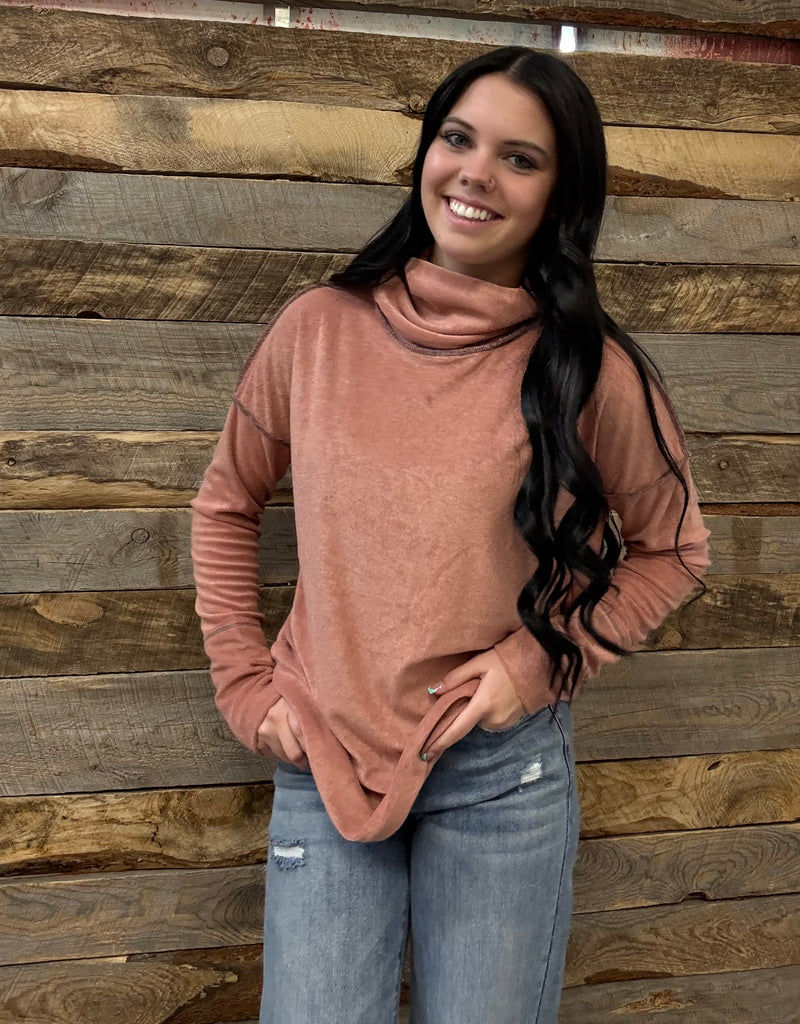 Loop Terry Turtle Neck Top With Thumb Open Cuffs