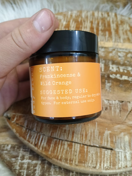 Sacred Glow: A Ritual of Radiance Ancient resin meets citrus vitality in this whipped bison tallow balm, where frankincense and wild orange unite to nourish skin and uplift spirit. Anchored in the rich, vitamin-packed base of ethically sourced bison tallow, this blend melts into the skin, delivering deep hydration and a luminous finish. Bison Tallow: Abundant in vitamins A, D, E, and K, it supports skin regeneration, strengthens the barrier, and locks in moisture with a silky, non-greasy feel. Frankincense: Revered for centuries, it tones and firms the skin, reduces the appearance of scars and fine lines, and promotes cellular renewal with its anti-inflammatory and antioxidant properties. Wild Orange: Bursting with vitamin C and natural enzymes, it brightens dull skin, boosts collagen production, and adds a cheerful, energizing aroma that awakens the senses. The result is a balm that feels both grounding and radiant—perfect for morning rituals or evening wind-downs. Let your skin drink in the glow of ancient wisdom and citrus joy!