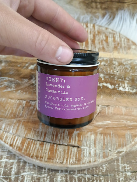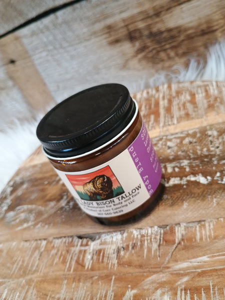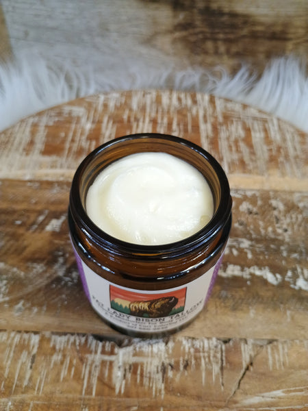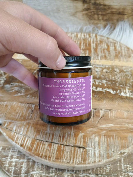 Ingredients: Organic Bison Tallow, Organic Caster Oil, Organic Olive Oil, Lavender Essential Oil, and Chamomile Essential Oil