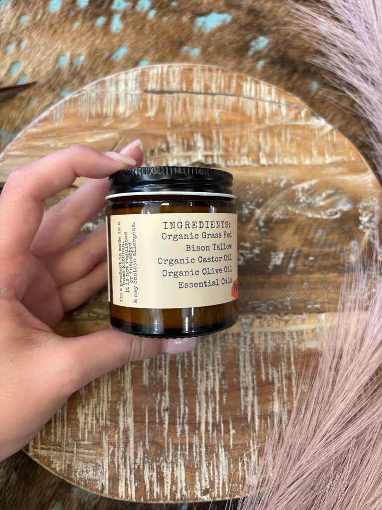 Ingredients: Organic Bison Tallow, Organic Caster Oil, Organic Olive Oil, Lavender Essential Oil, and Chamomile Essential Oil