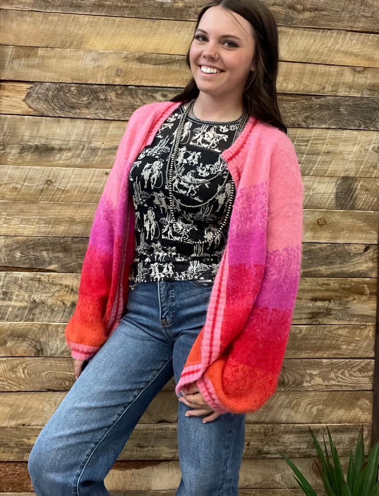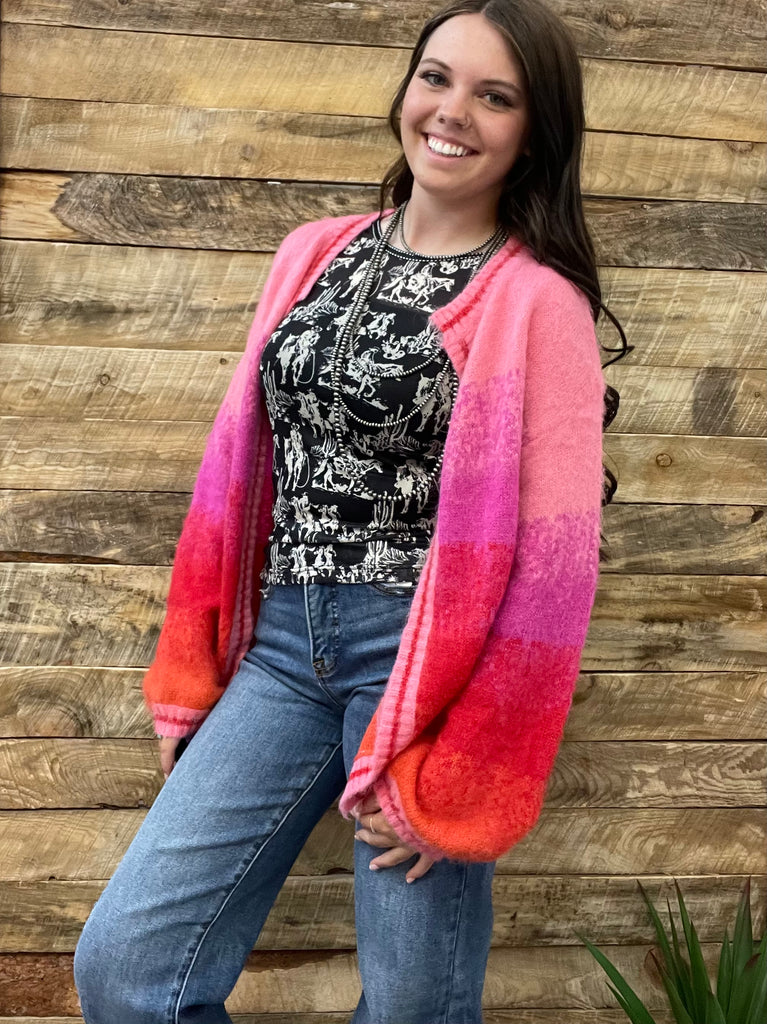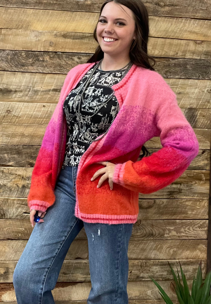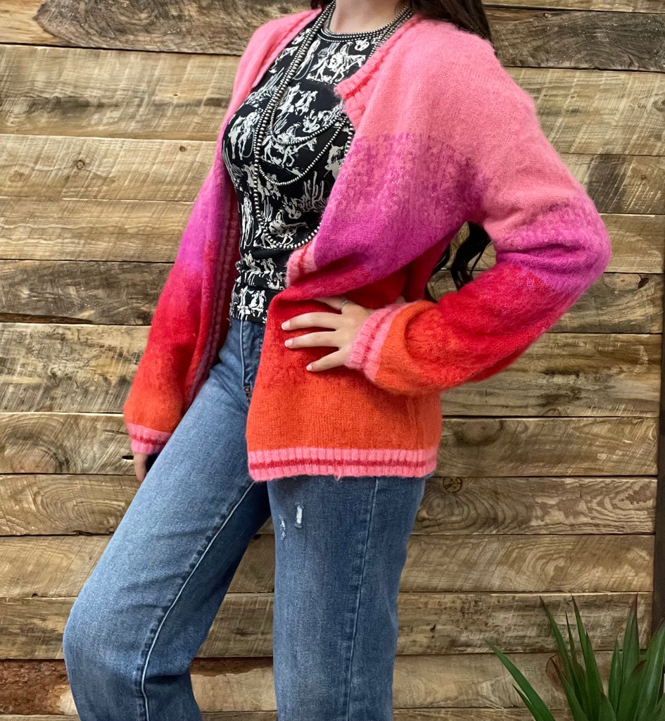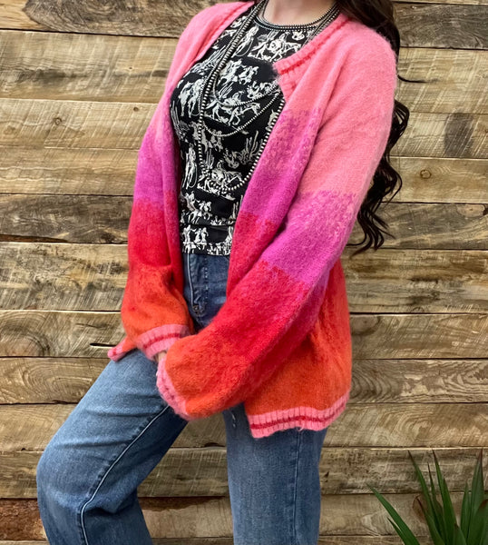 OMBRE EFFECT EDGE OPEN SWEATER CARDIGAN