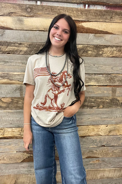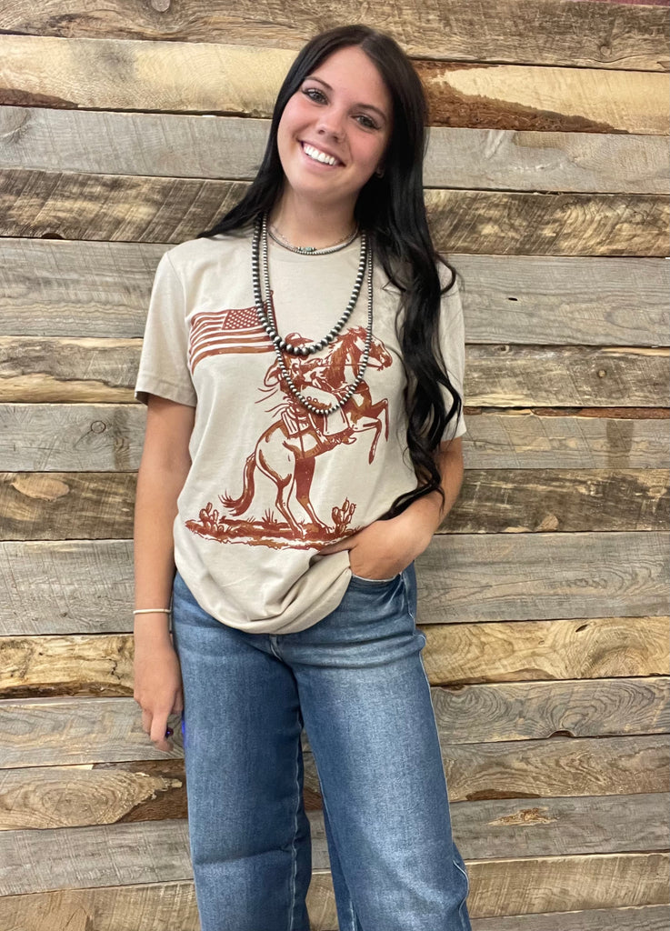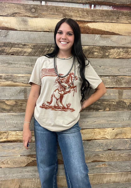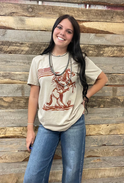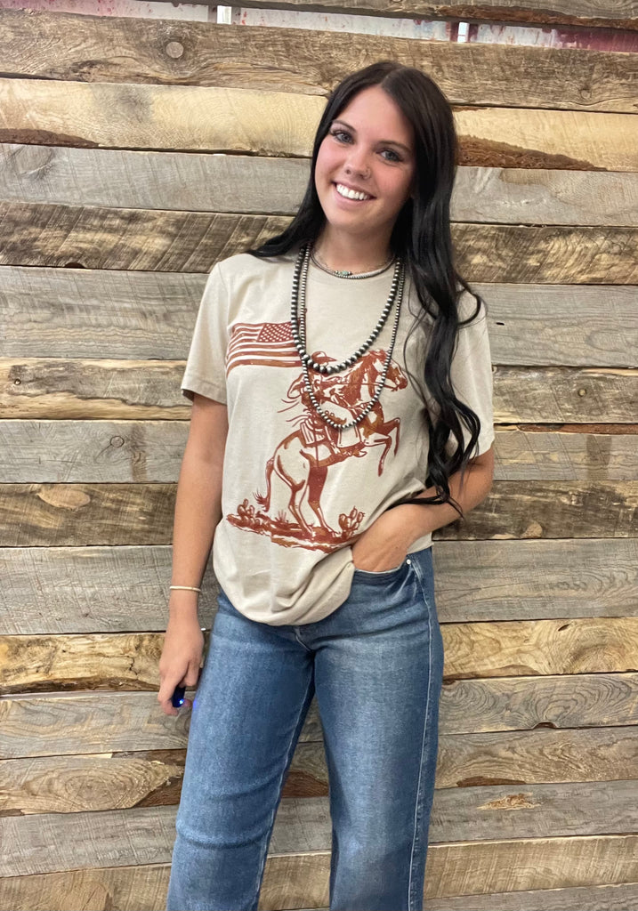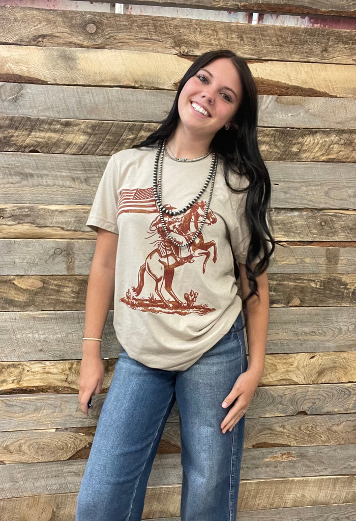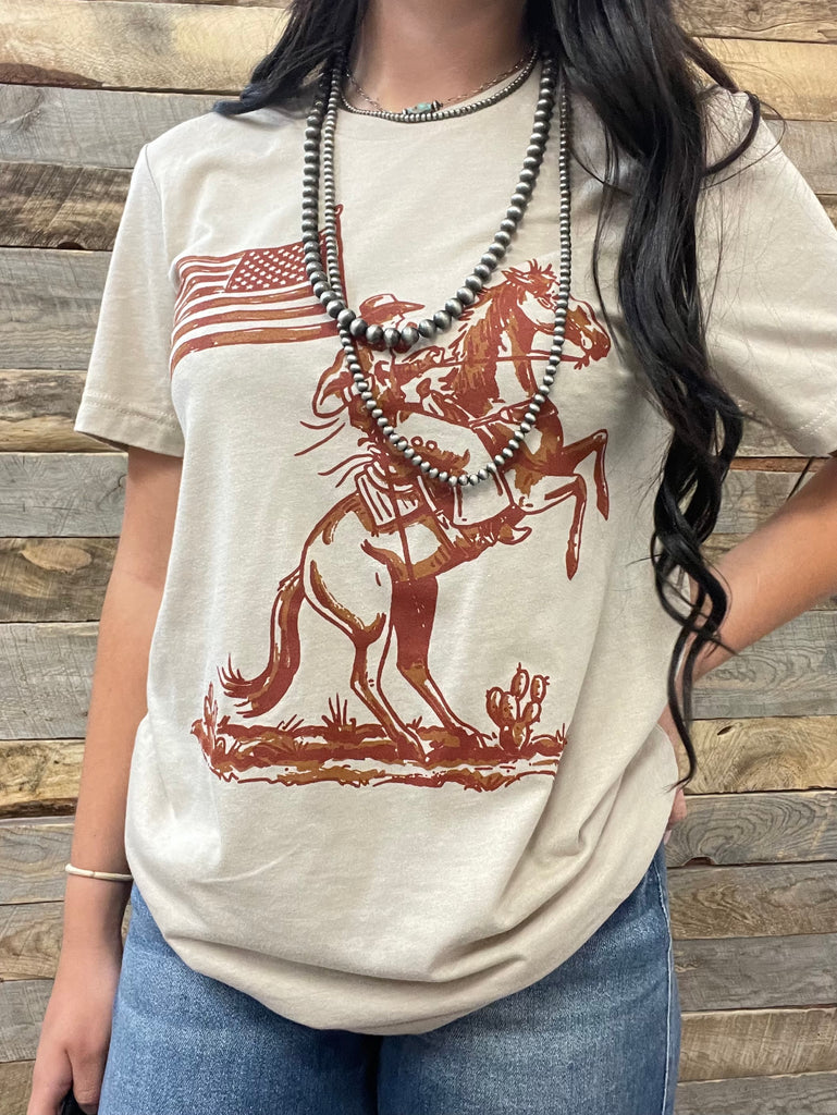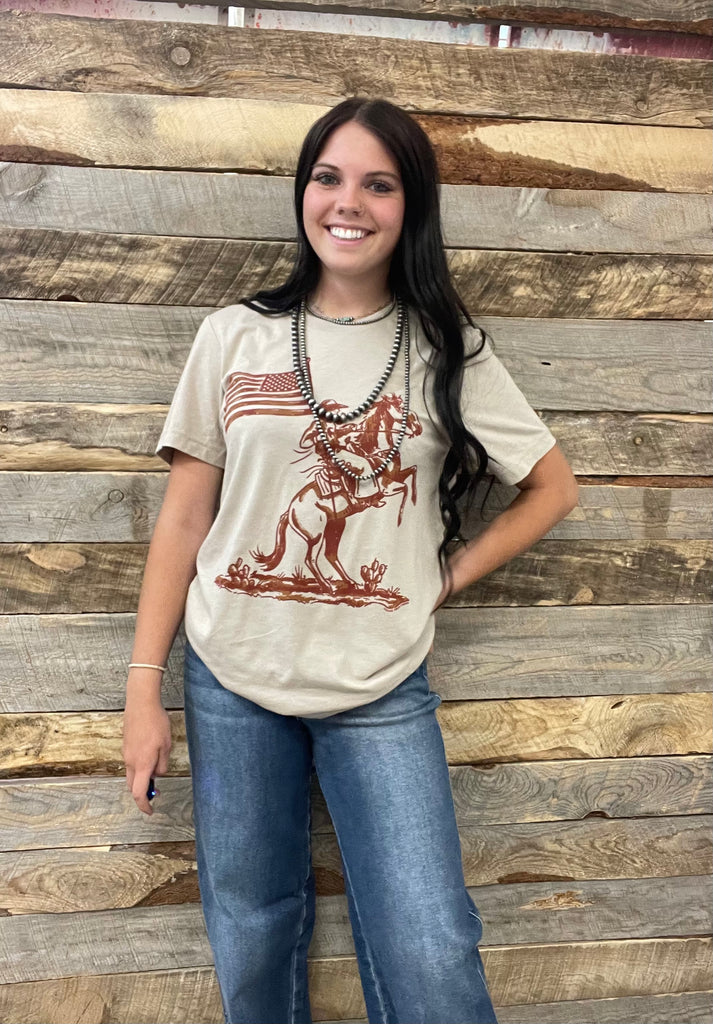 Nothing shows true patriotism that a cowboy holding the American flag!
