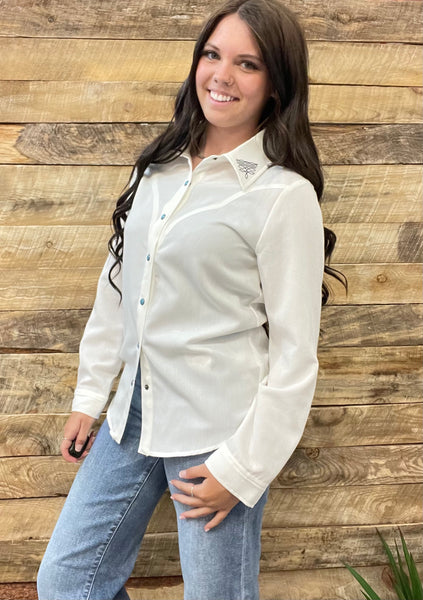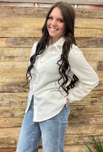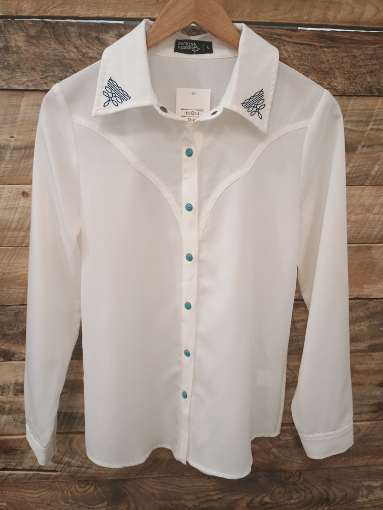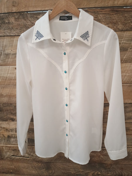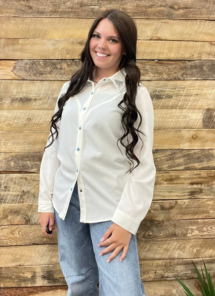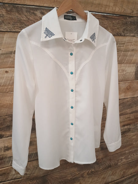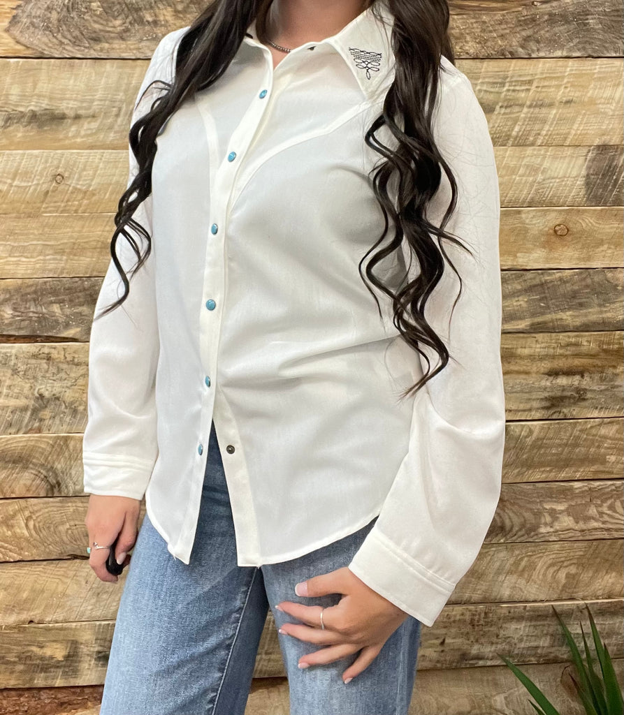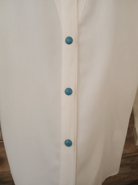 The Boot Stitch White Turquoise Snap Cardigan Top