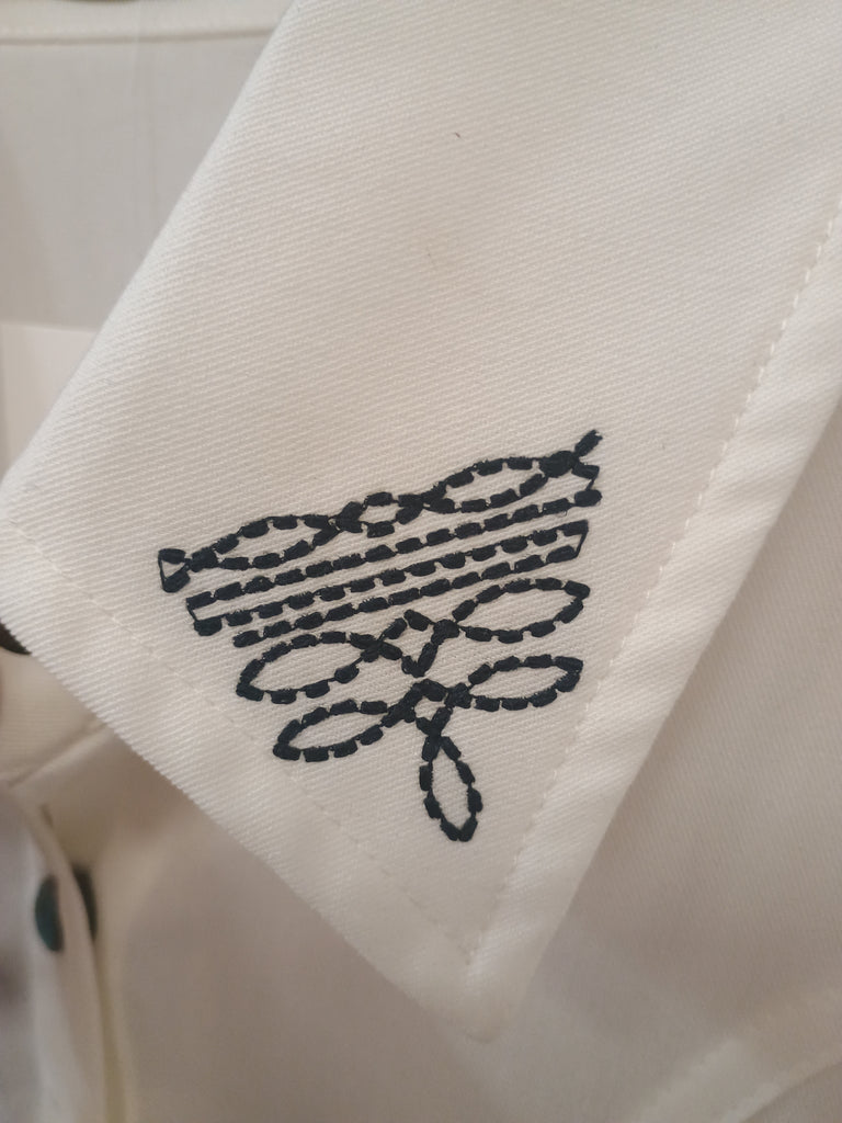 Cute boot stitch on collar and back.
