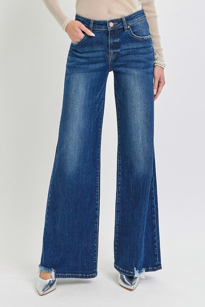 The Dana Mid Rise Extreme Wide Leg Dark Jeans