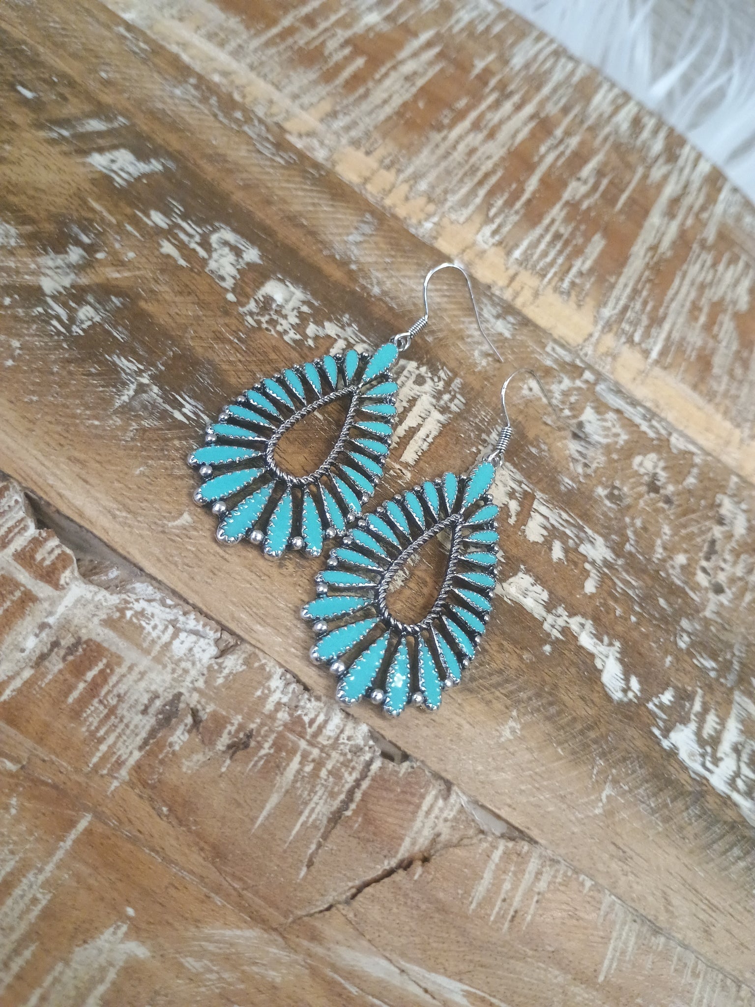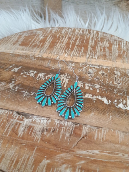 1409 R4-4 TURQUOISE NEEDLEPOINT TEARDROP