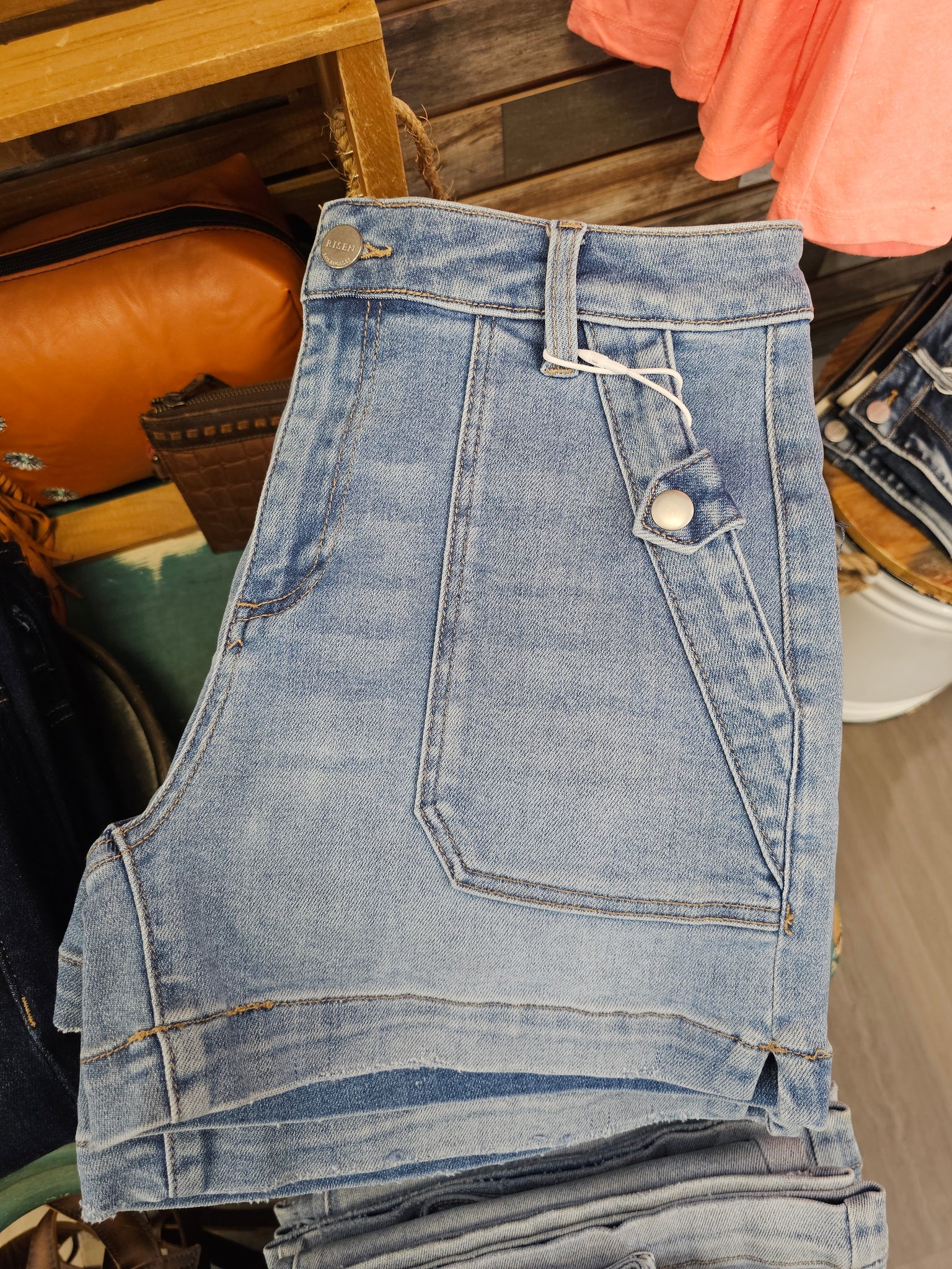 High Rise Patched Pocket Shorts