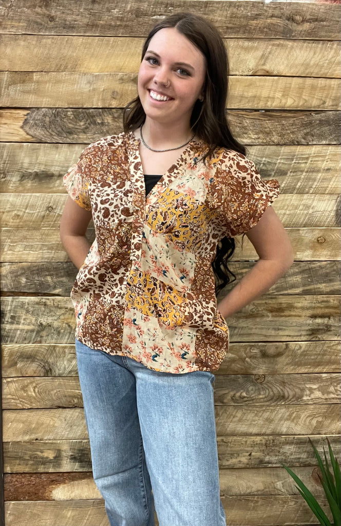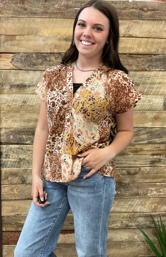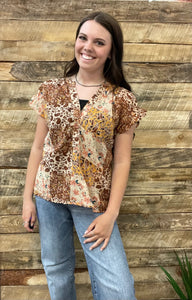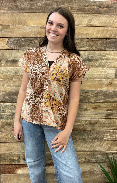 Smocked Flutter Sleeve BlouseModel is 5'10" wearing a small.
