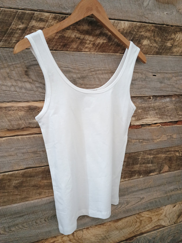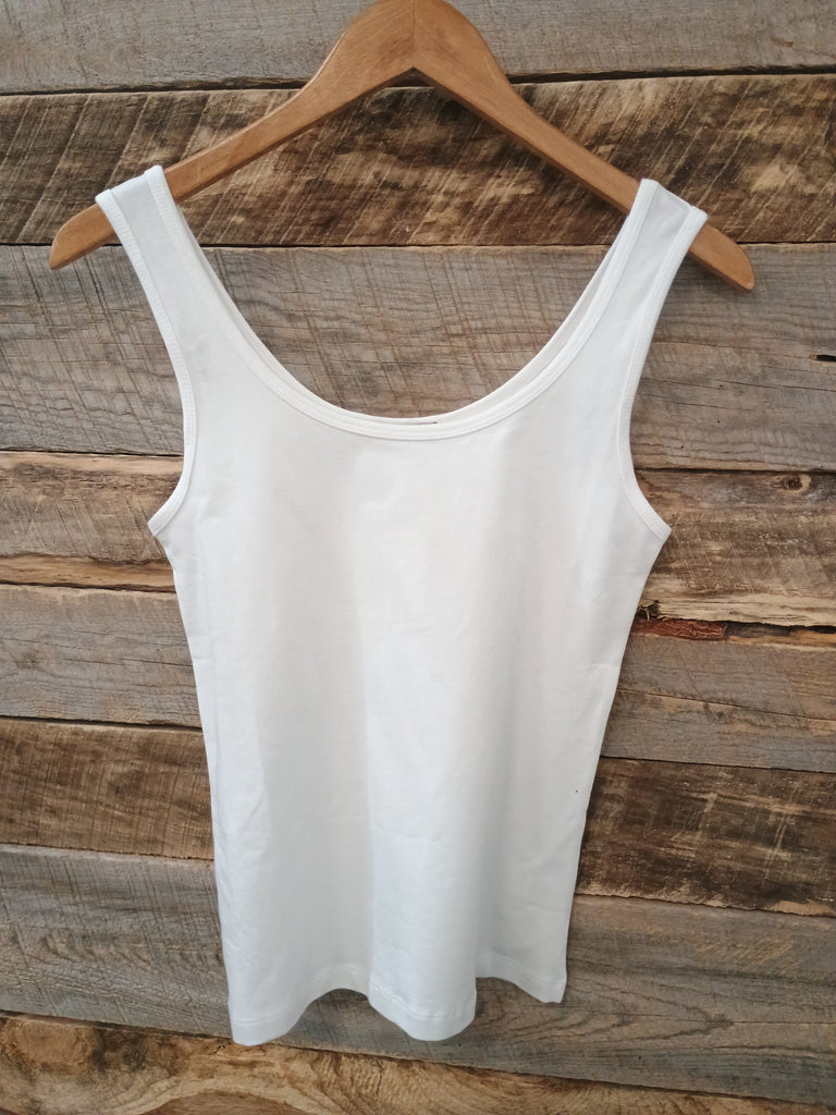 The Take It Basic White Tank Top features a timeless silhouette with a classic design. Crafted from premium-quality fabric, it ensures lasting comfort and durability. Its simple yet elegant style makes it an ideal choice for any setting. Made from 95% cotton and 5% spandex, this tank top offers a soft feel and a slight stretch. Measurements for size small are approximately 23" in total length and 29.5" in bust. Please note, color may vary slightly due to monitor differences. Made in Cambodia.