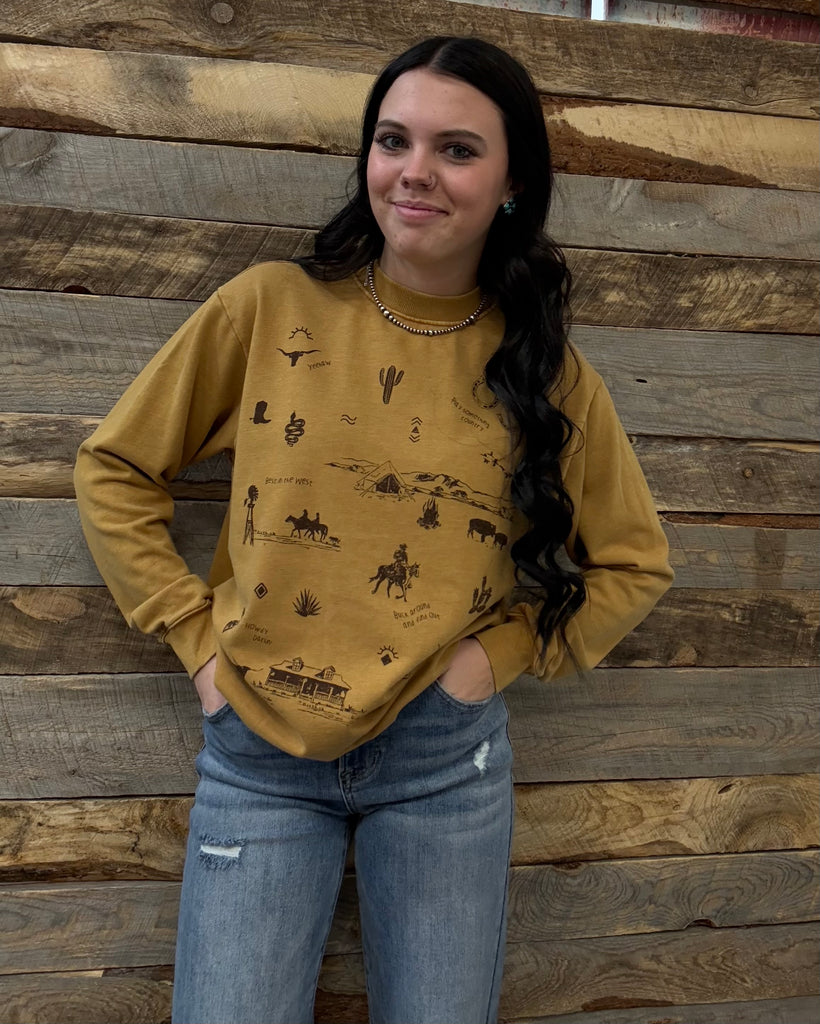 Graphic sweatshirt with an authentic vintage look and a softer feel that is only possible to achieve by using our special enzymes to dye and mineral wash processes.