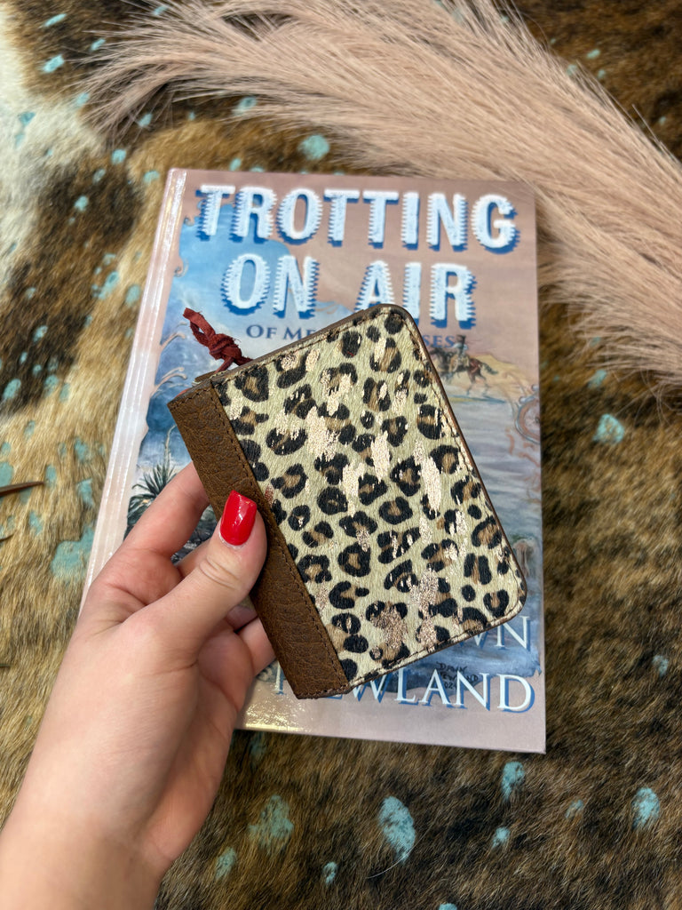 The Wide Open Plains Soni Wallet features luxurious hair on hide with leopard print and copper foil accents. Finished with genuine full grain oiled and waxed leather makes this the perfect accessory for any outfit.
